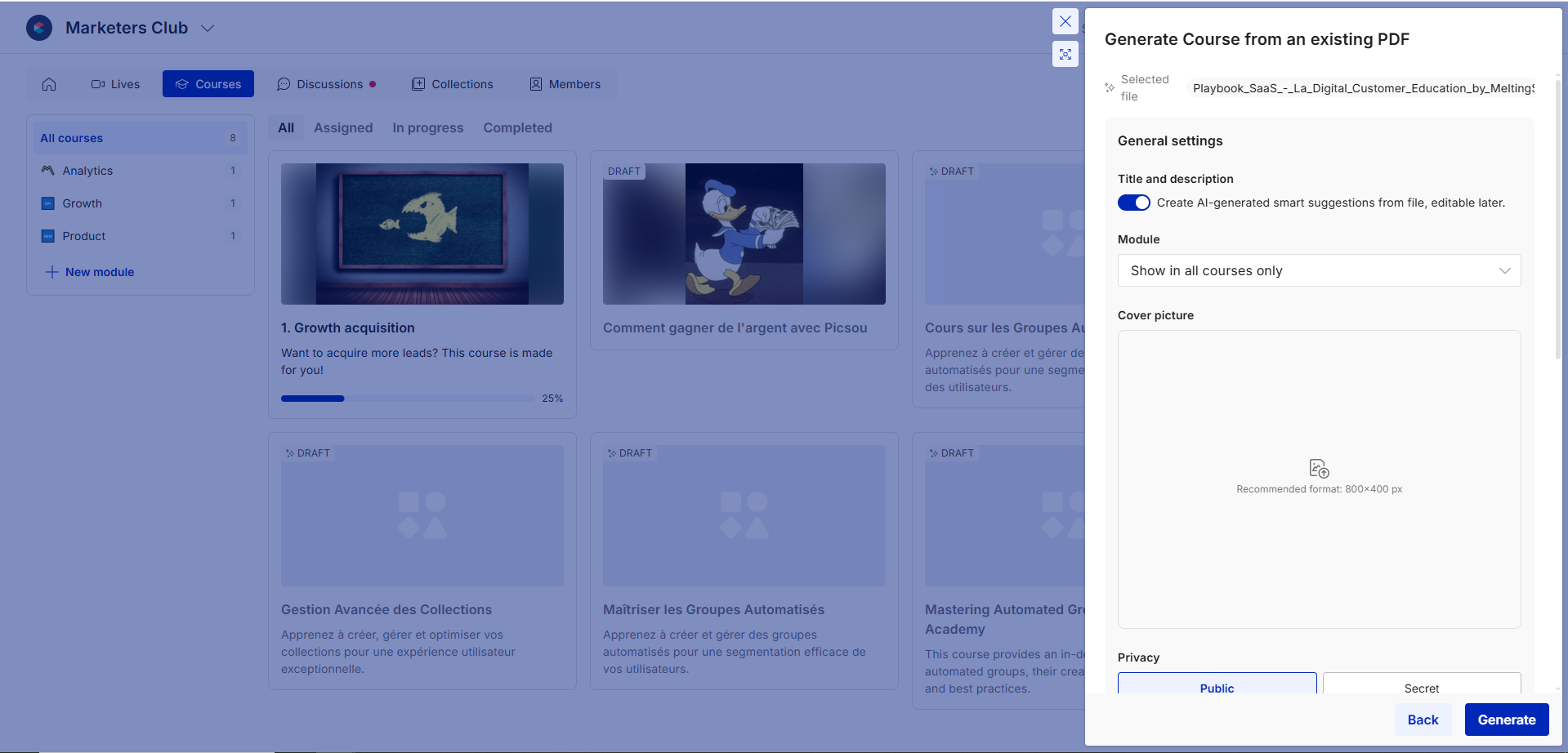 Once the generation is complete, you'll be notified! The course will be saved as a draft, allowing you to modify it before publishing.