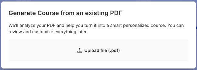 A modal will open, allowing you to upload the PDF file you want to use as the foundation for your course: